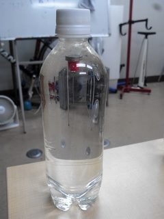 ペットボトルの側面を押すと中の醤油さしが下へ沈み、離すと上へ上がるというものです。