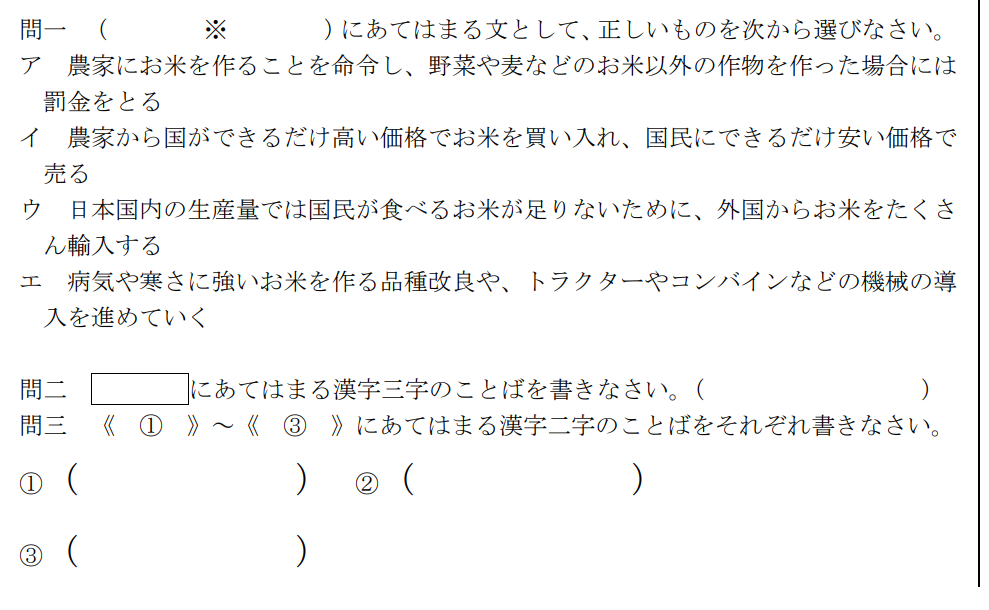 学校によって様々な問題形式があります。この問題形式に慣れておくことは非常に重要です。出題傾向ではないのでご注意ください。出題傾向はどのような問題が出題されるかです。今回は問題の形式、つまり、国語なら「漢字など知識の出題数、長文の出題数、記述が多い少ない、選択問題が多い少ない」などです。算数では「計算問題を含む一行文章題の出題数、大問出題数」などです。また、時間に対する出題量も問題形式として重要になります。