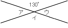 まず、前回の確認として「角度とはなにか」の話をもう一度し、「対頂角」について下の図のア~ウの角度を求めてもらいました。