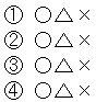ある規則に従って、記号を全部で12個並べました。最後の記号は何ですか。また、〇は何個ありますか。