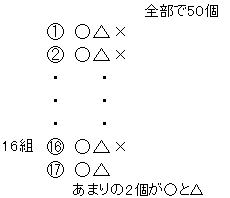次に、同じように記号を並べていって、全部で50個並べた場合について、考えてもらいました。