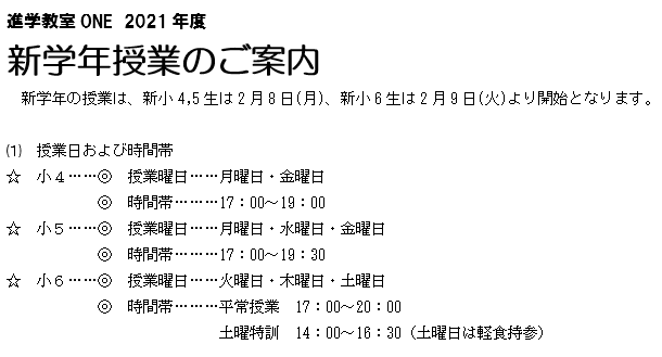 本日、小4,5生の授業におきまして、新学年授業のご案内を配付いたしましたので、ご確認いただければと存じます。よろしくお願いいたします。