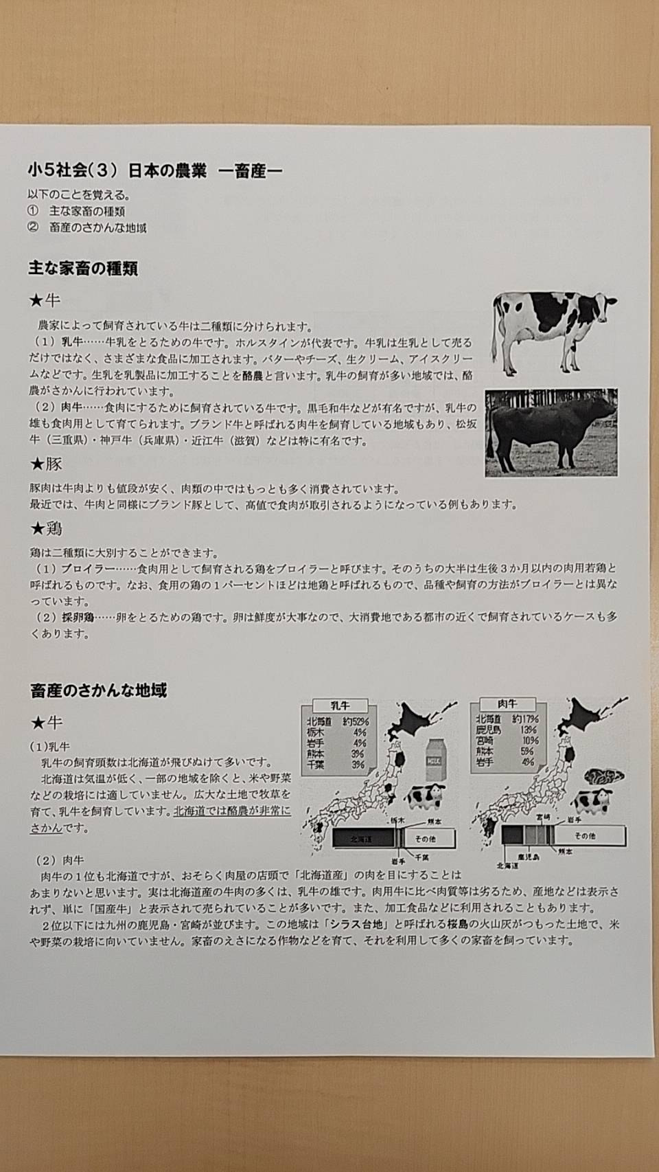 授業においては、「畜産」について扱いました。