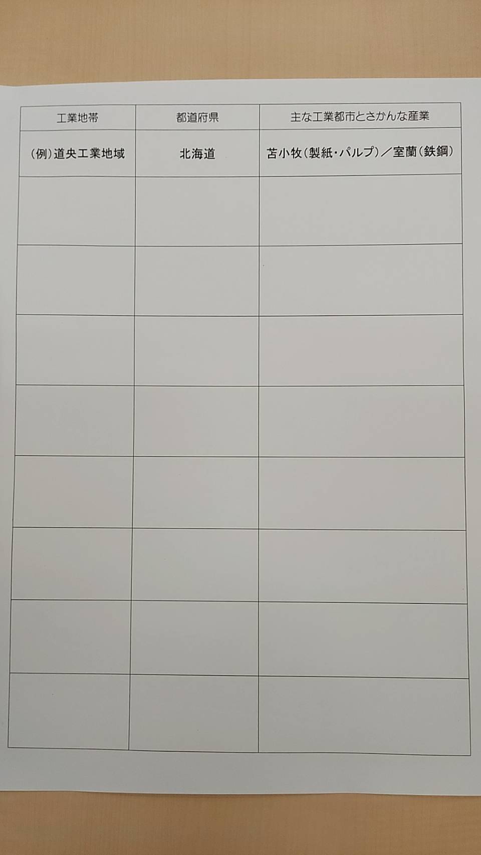 前回の授業報告に記載した「工業地帯・工業地域」のテストを実施しました。