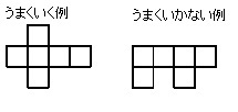 何通りかはすぐにできるのですが、思いつくままにやっていったのでは、行き詰まってしまいます。「うまくいかなかった部分がどこなのかを考えてそれを修正する。」「それまでに作った展開図を観察してグループ分けする。」などといった工夫をしていかないと11種類すべてを見つけることは困難です。このように自分なりに工夫してもらうことが今回のテーマです。