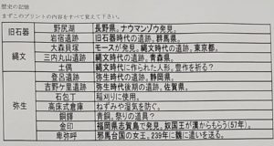 旧石器時代~弥生時代までの学習を終え、この分野についてのテストを繰り返し行っています。