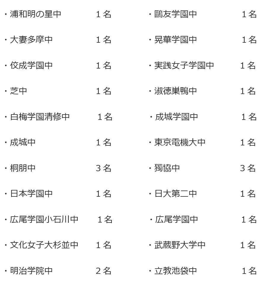 繰り上げ合格の可能性等がありますので、最終的な合格実績は2月中旬に掲載となります。