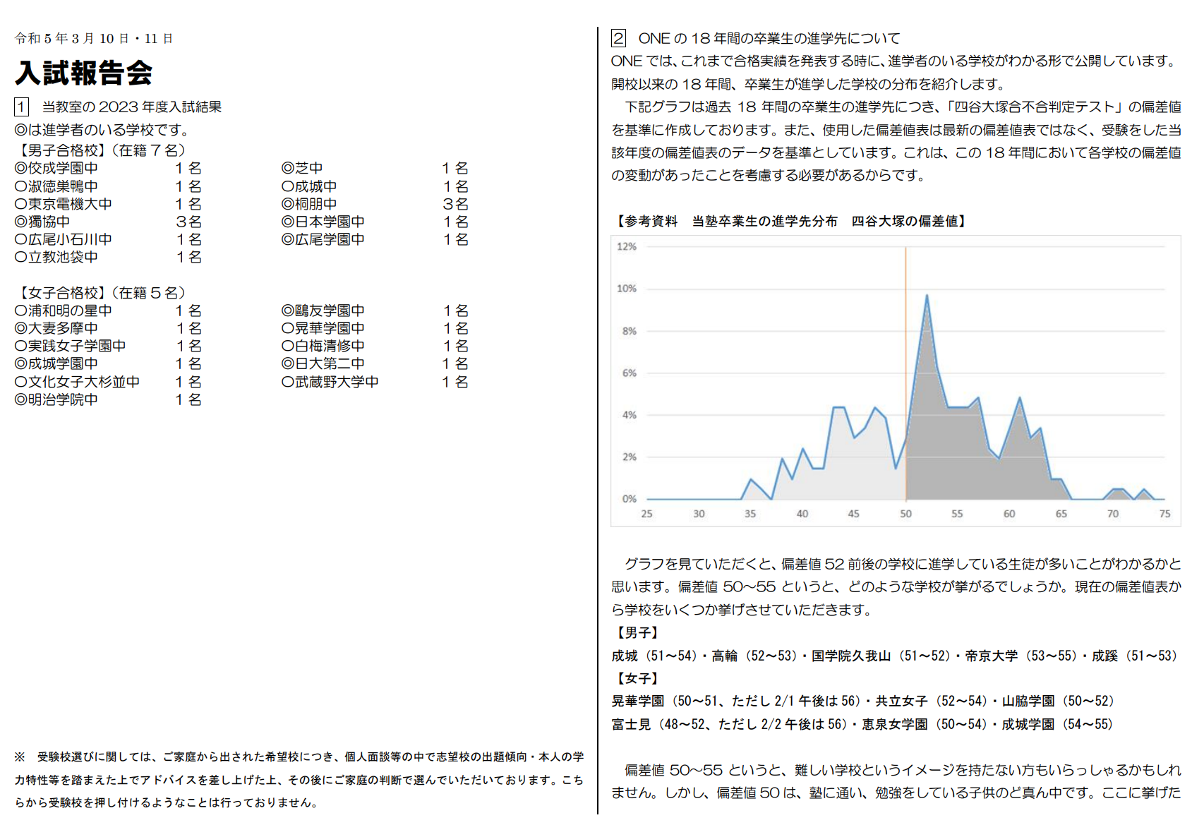 当教室の入試報告会は大手塾の入試報告会とは大きく異なっています。受験生の数の増減、試験日の変更等に伴う難易度や倍率の変化といった、自分たちがコントロールできない事象については、一切お話しません。