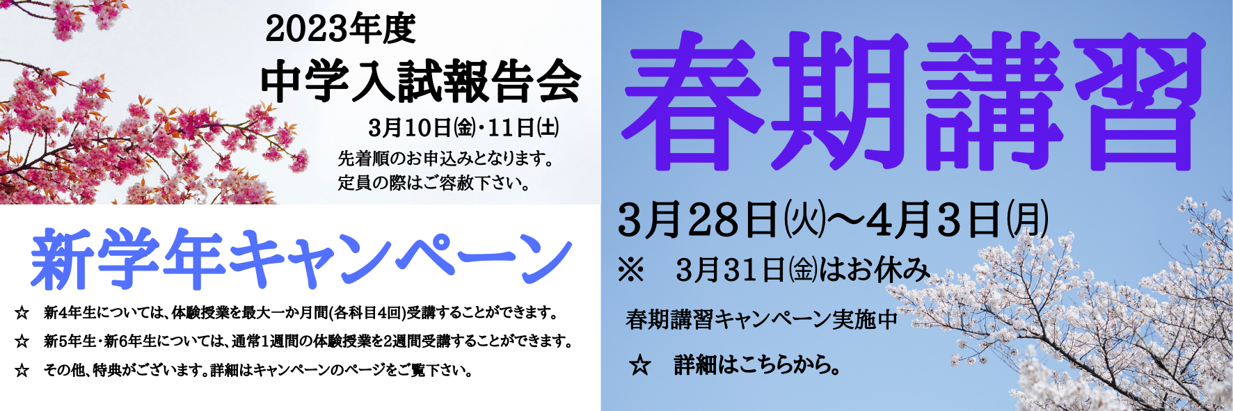 →詳細はこちら 春期講習のお知らせ