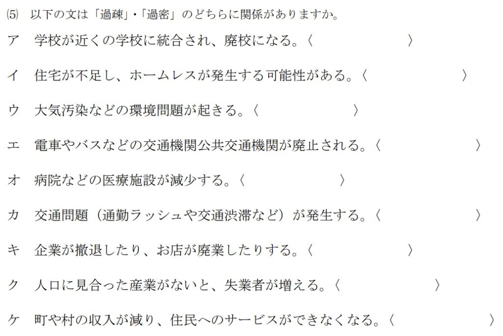 「過疎」・「過密」については、全員がきちんと二つの現象の意味を理解してくれていました。