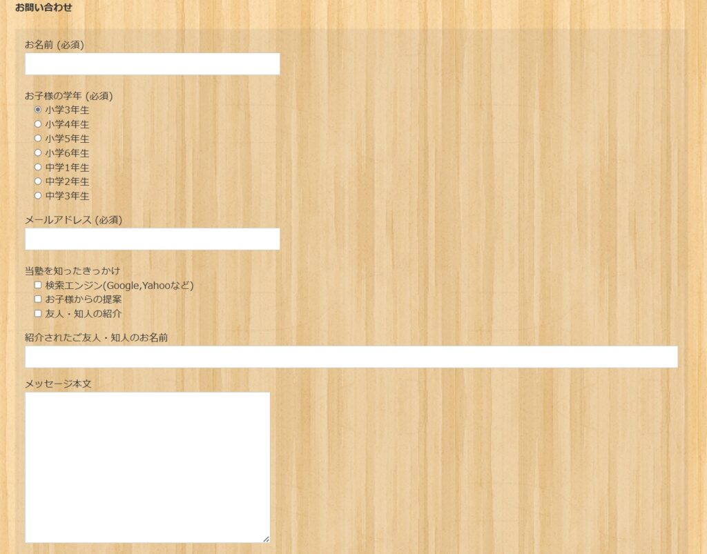 当教室のホームページのブログおよびトップページの下部には、下の画像の「お問い合わせフォーム」があります。