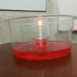 ロウソクに火を灯して、その上から透明なビンを被せます。